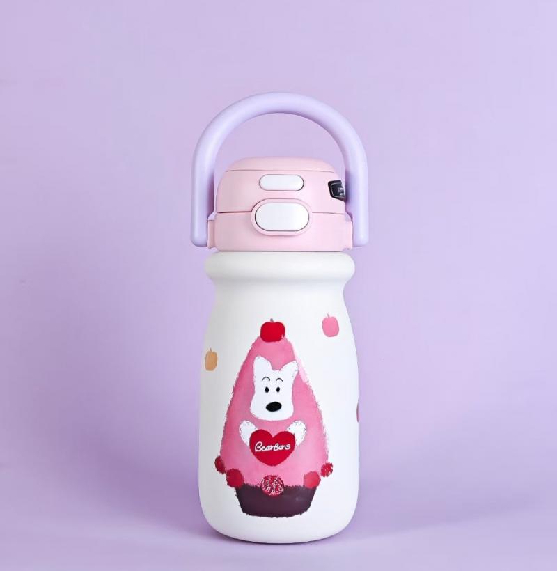 熊本士双饮保温杯 拎拎杯550毫升 冰激凌