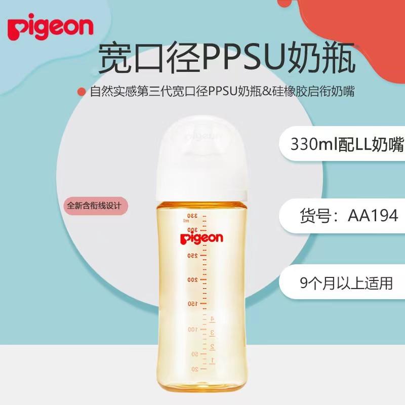 贝亲自然实感三代宽口径PPSU奶瓶330ml(LL号奶嘴)9个月以上AA194