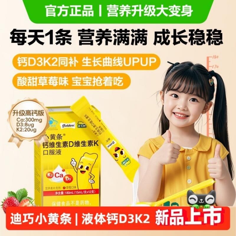 国内发货 迪巧D-CAL小黄条钙维生素D维生素K口服液升级版15ml*12条/盒(草莓味)【保健食品不是药品,不能代替药物治疗】